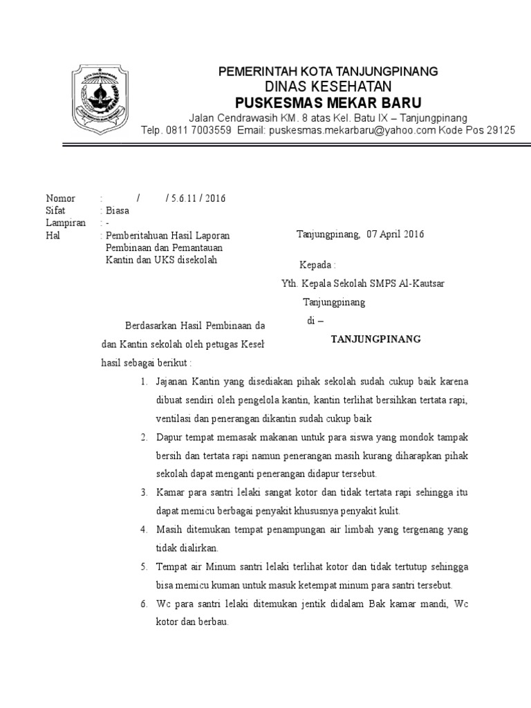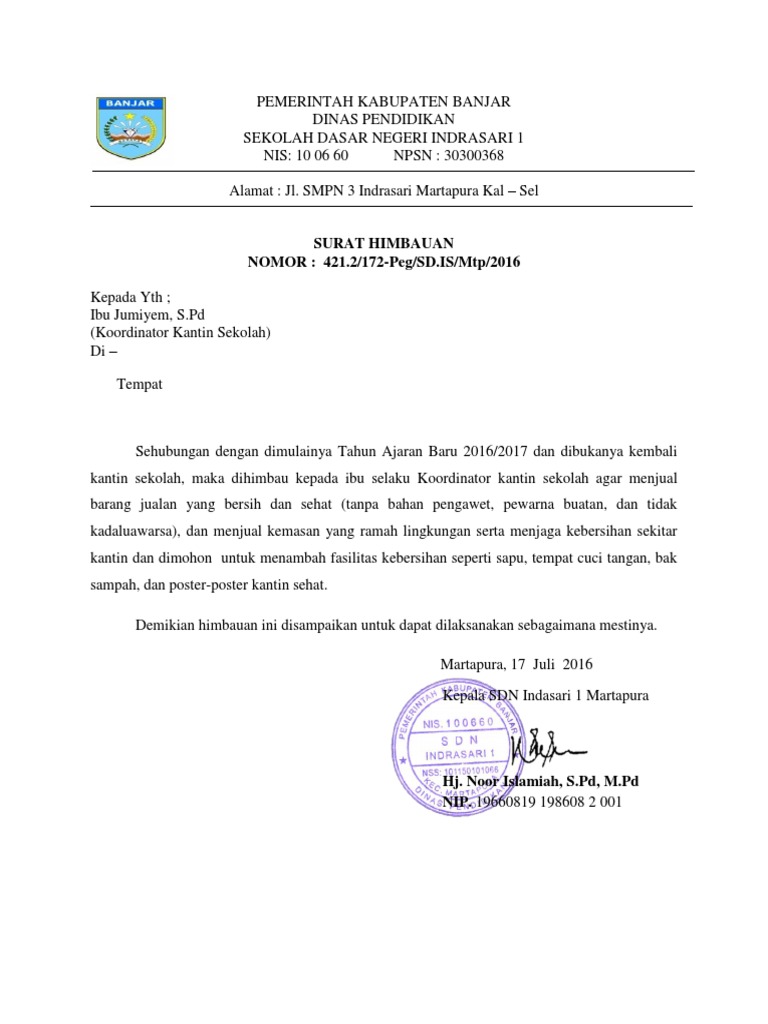 Contoh Surat Amaran Pertama Kepada Pengusaha Kantin